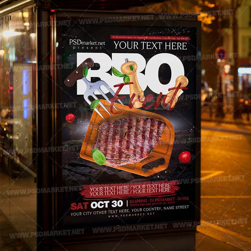 BBQ PSD Template Flyer is a simply modern flyer design by PSDmarket Team to be used with Photoshop CS3 and higher. Save your time and use it for business or for your clients! This can be use for BBQ, BBQ Day Event, BBQ Party Event, BBQ Event, BBQ Delight, BBQ Weekend, BBQ, BBQ Party, Barbecue, Barbecue Day, BBQ Party, BBQ, BBQ Invitation, Weekend BBQ, Grill Party, Grill, Barbecue Event or BBQ Bash and others.