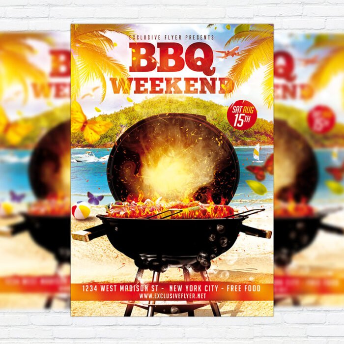 The BBQ Weekend is the exclusive Photoshop PSD flyer/poster template designed by ExclusiveFlyer to promote your BBQ Weekend. This is a modern, stylish, fresh flyer and just be used for a BBQ Party, Barbecue Weekend, Barbecue Night or BBQ Festival. Dear customers! – you can also: Customize any flyers or Hire Us to create any unique product. Also, you can get unlimited access to all our templates. You can buy 1 month membership, 3 or 6 months membership or even 1 year membership plan and login on site, choose a design, click the button DOWNLOAD TEMPLATE and it’s yours. No hassle, no checkout! When you paid the template, you can find it in your personal account and of course you’ve got a message to your e-mail (maybe in spam) with link to download. Also, you can find all templates, which you buy, in your personal account! All of our flyers have a very good quality (300DPI). And it means that you just need to download one of them and make the necessary modifications such as replace the elements or choose the colors and start to invite your guests! You can order from us design of Banner Ad, Bi-Fold Brochure, Tri-Fold Brochure, Business Card, Logo, One-Sided Flyer, Two-sided Flyer or Postcard. All you need is to checkout and write us all information on our e-mail or skype. (order now). There are a lot of free flyer templates, free business card templates on our site! Also there are a lot of categories of flyers such as club flyers, seasonal flyers, sport flyers and also business flyers. You have a great choise on our site, so good luck! Don’t forget to follow our Facebook community, our page on Twitter, on Pinterest and on Tumblr and leave comments, cause we work for you! PSD is set up in 1275×1875 dimension (4″×6″ with 0,25″ bleed). The PSD file is very well organised, with color coded groups and layers named appropriately. Remember, all stock images of models and other people used only for demonstration all charms of the flyer and don’t included in the download!