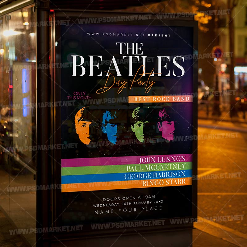 Beatles Day Party Flyer is a simply modern flyer design by PSDmarket Team to be used with Photoshop CS3 and higher. Save your time and use it for business or for your clients! This can be use for Beatles Day Party, Beatles Night, Beatles Party, Beatles Night, The Beatles Day Celebration, Beatles Celebration, Beatles Party Night, Remember Beatles or Beatles Day and others.