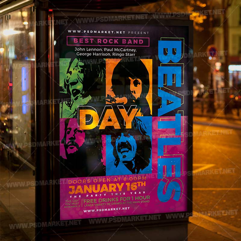 Beatles Night Flyer is a simply modern flyer design by PSDmarket Team to be used with Photoshop CS3 and higher. Save your time and use it for business or for your clients! This can be use for Beatles Night, Beatles Party, Beatles Night, The Beatles Day Celebration, Beatles Celebration, Beatles Party Night, Remember Beatles or Beatles Day and others.