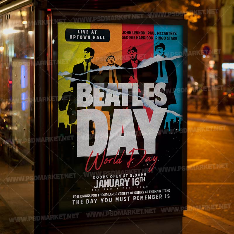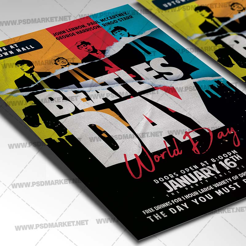 Beatles PSD Template is a simply modern flyer design by PSDmarket Team to be used with Photoshop CS3 and higher. Save your time and use it for business or for your clients! This can be use for Beatles Day Party, Beatles Night, Beatles Party, Beatles Night, The Beatles Day Celebration, Beatles Celebration, Beatles Party Night, Remember Beatles or Beatles Day and others.