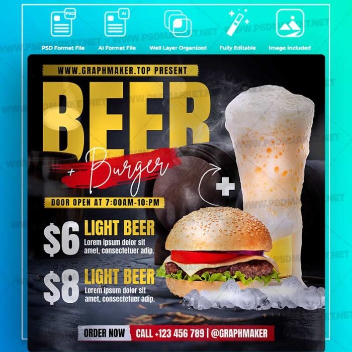 This modern Beer Burger Social Media Templates is ideal choice for your Beer Burger flash sales or product discounts? You are all potential clients who can make great use of these readymade designs.