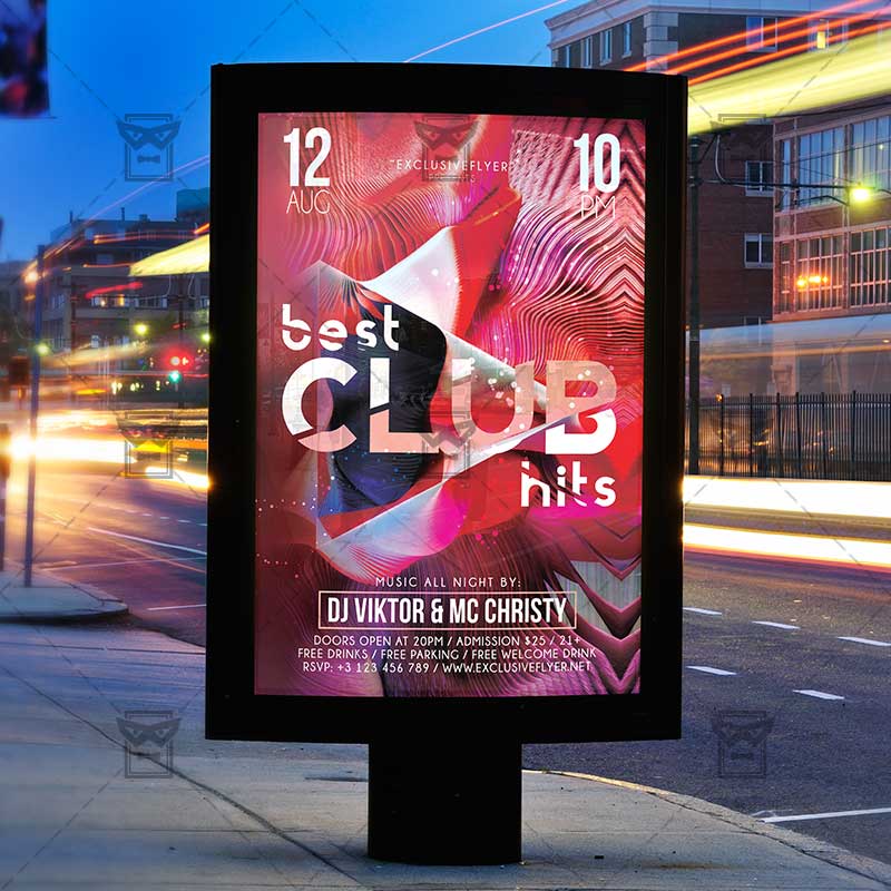 Best Club Hits is an exclusive PSD flyer template for Adobe Photoshop designed by our best graphic designers to facilitate your task in promoting your business. With our readymade Club flyer in psd format you can invite you customers and guest to your event or to the best Club Party Night, Best Night, Mix Party Night or Club Music Party in their lives.