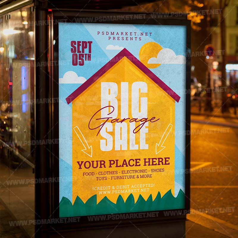 Big Garage Sale Flyer is a simply modern flyer design by PSDmarket Team to be used with Photoshop CS3 and higher. Save your time and use it for business or for your clients! This can be use for Garage Sale, Annual Yard Sale, Big Garage Sale, Big Yard Sale and others.