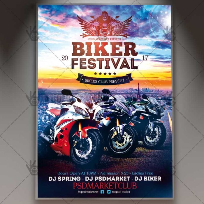 Biker Festival is a simply modern flyer design by PSDmarket Team to be used with Photoshop CS3 and higher. Save your time and use it for business or for your clients! This can be use for Moto Cross Party, Moto Cross Night, Motor Club Event, Motorcycle Club Event, Motor Bike Event and others.