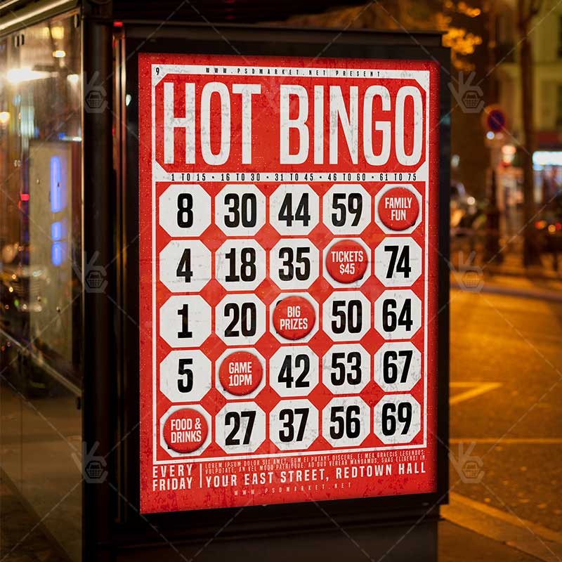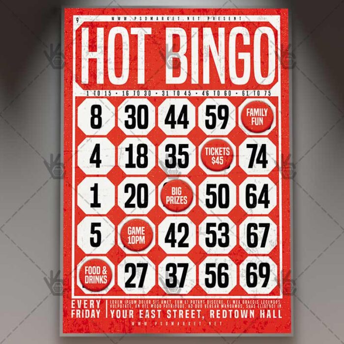 Bingo is a simply modern flyer design by PSDmarket Team to be used with Photoshop CS3 and higher. Save your time and use it for business or for your clients! This can be use for Bingo Party, Bingo Night, Hot Bingo, Bingo Tournament, Bingo Game, Competition Tournament and others.