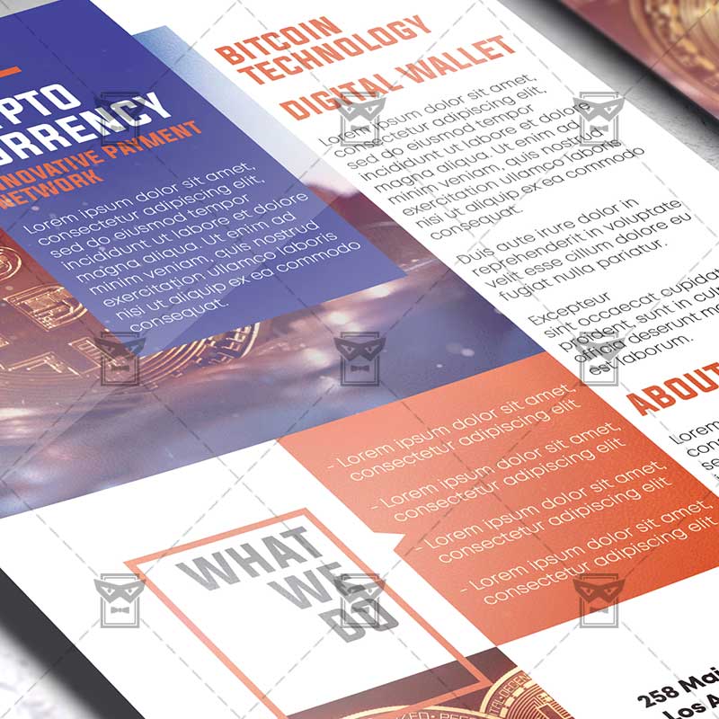 Bitcoin Mining Workshop Template an exclusive PSD flyer template for Adobe Photoshop designed by our best graphic designers to facilitate your task in promoting your business. This readymade flyer in psd format is perfect for upscale cryptocurrency workshops, crypto-currency event, bitcoin workshops, bitcoin mining conferences. With our Bitcoin Mining templates, we’ve tried to create a design that you can use a wide variety of construction related businesses. The design is modern, stylish, exclusive, fashionable and most of all, confident.