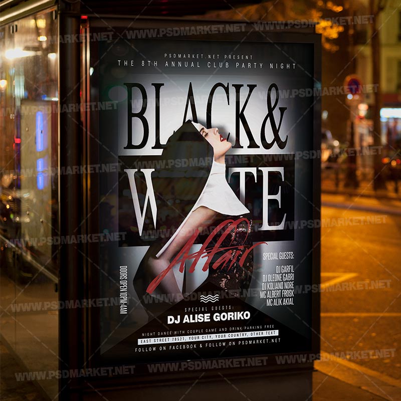 Black and White Flyer is a simply modern flyer design by PSDmarket Team to be used with Photoshop CS3 and higher. Save your time and use it for business or for your clients! This can be use for Black and White, Black White Affair, Yellow Party, Black White Party, White Party, Black Night, Black Night Party, Black Party Event, Black Party, All Black Everything, All Black Party, Black Party, Black Event, Black Celebration, Sexy Black Party, Black Festival, Luxury Black Party and others.