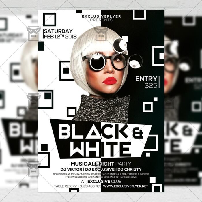Black and White Party – Club A5 Flyer Template