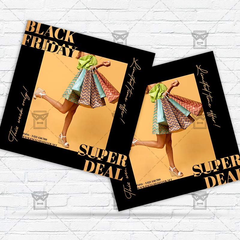 Black Friday Deal Template an exclusive PSD flyer template for Adobe Photoshop designed by our best graphic designers to facilitate your task in promoting your business. With our readymade Club flyer in psd format you can invite you customers and guest to your event or to the best Black Friday Sale, Cyber Monday Sale, Pre Sale, Black Friday Discount in their lives.