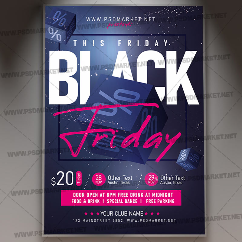Black Friday Event Template Flyer is a simply modern flyer design by PSDmarket Team to be used with Photoshop CS3 and higher. Save your time and use it for business or for your clients! This can be use for Black Friday Event, Black Friday, Black Friday Sale, Black Friday Deals, Super Sale, Black Friday, Big Deal, Black Friday Offer, Black Friday Discount and others.