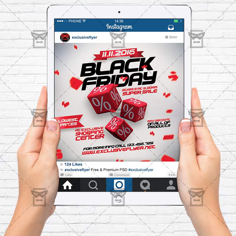 The Black Friday Super Sale is the exclusive Photoshop PSD flyer template designed by ExclusiveFlyer to promote your Black Friday Super Sale. This is a modern, stylish flyer and just be used for a Black Friday, Sale Day, Mega Sale etc. Dear customers! – you can also: Customize any flyers or Hire Us to create any unique product. Also, you can get unlimited access to all our templates. You can buy 1 month membership, 3 or 6 months membership or even 1 year membership plan and login on site, choose a design, click the button DOWNLOAD TEMPLATE and it’s yours. No hassle, no checkout! When you paid the template, you can find it in your personal account and of course you’ve got a message to your e-mail (maybe in spam) with link to download. Also, you can find all templates, which you buy, in your personal account! All of our flyers have a very good quality (300DPI). And it means that you just need to download one of them and make the necessary modifications such as replace the elements or choose the colors and start to invite your guests! You can order from us design of Banner Ad, Bi-Fold Brochure, Tri-Fold Brochure, Business Card, Logo, One-Sided Flyer, Two-sided Flyer or Postcard. All you need is to checkout and write us all information on our e-mail or skype. (order now). There are a lot of free flyer templates, free business card templates on our site! Also there are a lot of categories of flyers such as club flyers, seasonal flyers, sport flyers and also business flyers. You have a great choise on our site, so good luck! Don’t forget to follow our Facebook community, our page on Twitter, on Pinterest and on Tumblr and leave comments, cause we work for you! PSD is set up in 1275×1875 dimension (4” x 6” with 0,25” bleed). The PSD file is very well organised, with color coded groups and layers named appropriately. Remember, all stock images of models and other people used only for demonstration all charms of the flyer and don’t included in the download!
