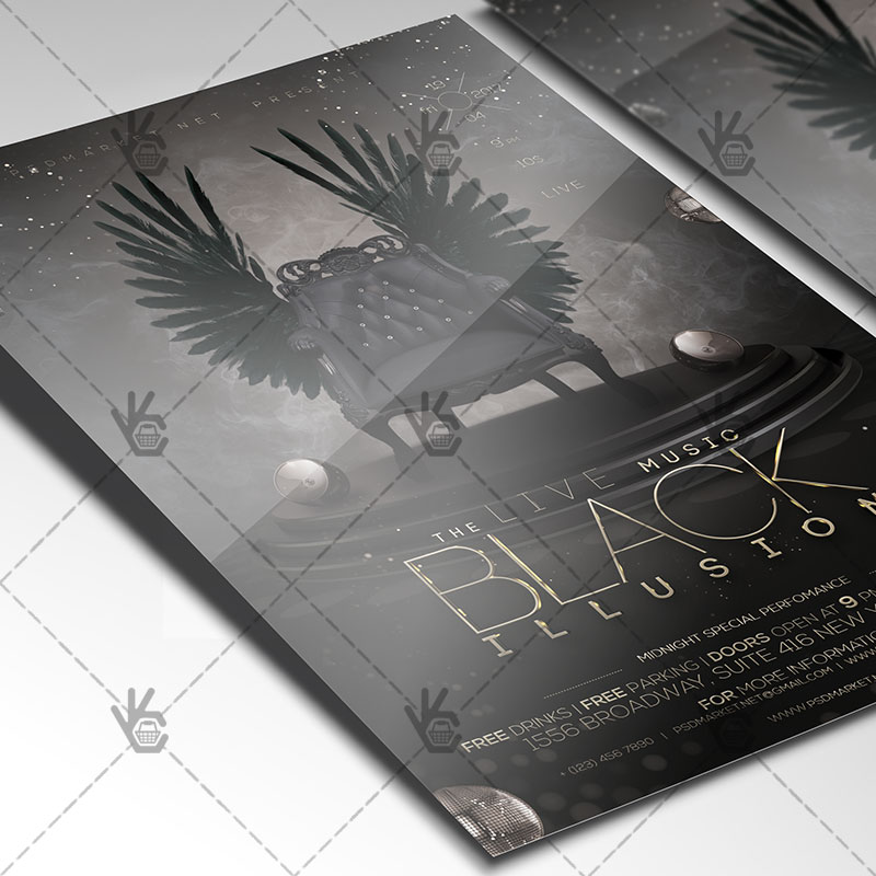 Black Illusion is a simply modern flyer design by PSDmarket Team to be used with Photoshop CS3 and higher. Save your time and use it for business or for your clients! This can be use for Black Party, Birthday , Illusion Night, Karaore Night, Karaore Party or Black Night and others.