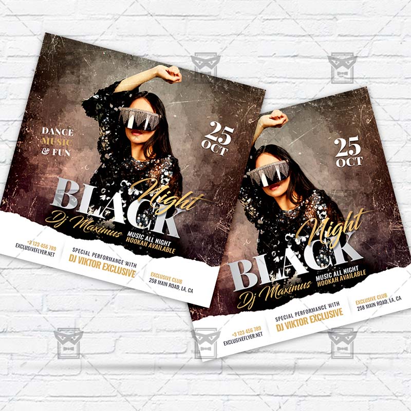 Black Night Template an exclusive PSD flyer template for Adobe Photoshop designed by our best graphic designers to facilitate your task in promoting your business. With our readymade Club flyer in psd format you can invite you customers and guest to your event or to the best Crazy Night Party, Crazy Vibes, Crazy Event, Crazy Show in their lives.