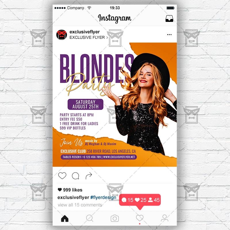 Blondes Party Template an exclusive PSD flyer template for Adobe Photoshop designed by our best graphic designers to facilitate your task in promoting your business. With our readymade Club flyer in psd format you can invite you customers and guest to your event or to the best Party Club, Party Night, Party Online, Live Party, Live Show Night, Online Show. Online Dj Battle, Online Party On in their lives.