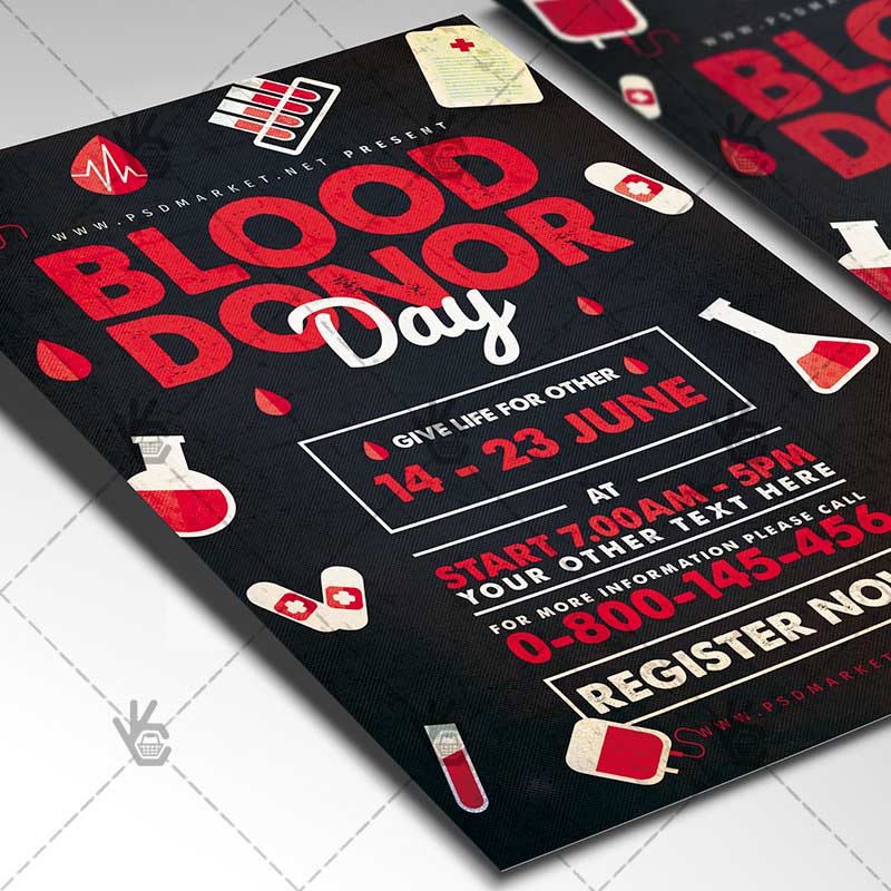 Blood Donor Day Flyer is a simply modern flyer design by PSDmarket Team to be used with Photoshop CS3 and higher. Save your time and use it for business or for your clients! This can be use for Blood Donor Day, Blood Drop, World Blood Donor Day, Donor Day, Blood Drive, Blood Day, Blood Donation or Blood Drive Event and others.