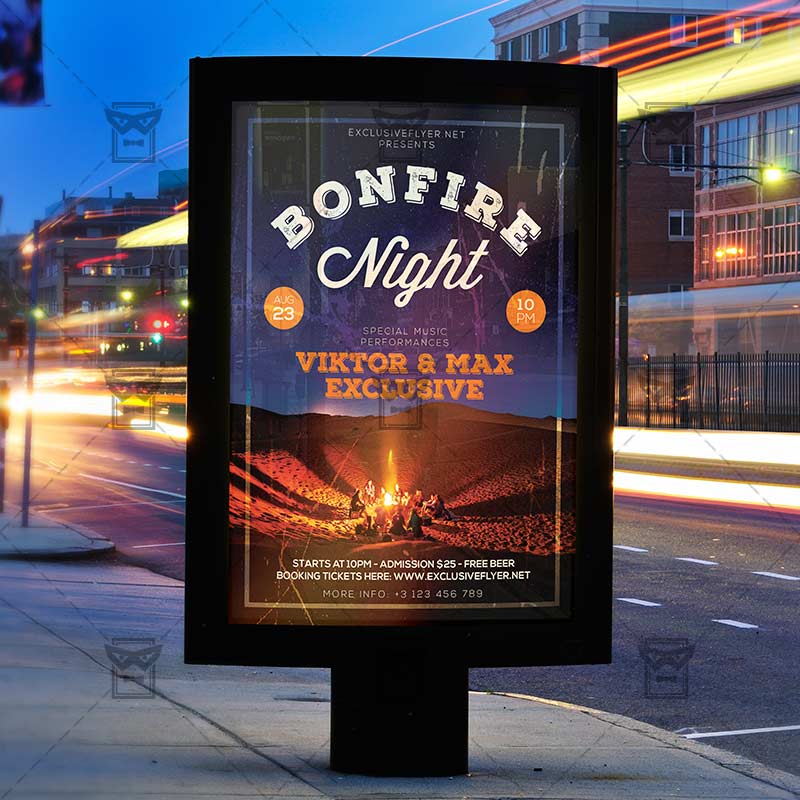 Bonfire Night Template an exclusive PSD flyer template for Adobe Photoshop designed by our best graphic designers to facilitate your task in promoting your business. With our readymade Club flyer in psd format you can invite you customers and guest to your event or to the best Bonfire Party, Bonfire Night, Bonfire Coockout, Bonfire Event or Bonfire Outdoor Party in their lives.