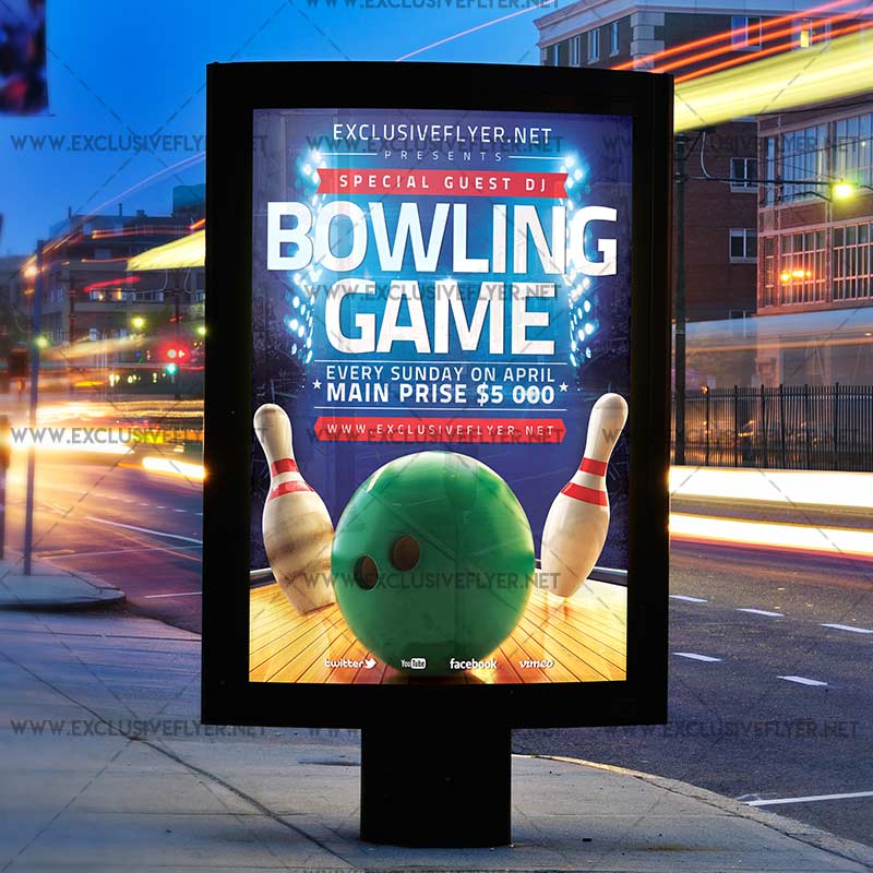The Bowling Game is the exclusive Photoshop PSD flyer template designed by ExclusiveFlyer to promote your Bowling Game. This is a modern, stylish flyer and just be used for a Bowling Game Night, Bowling Tournament, Bowling Night etc.