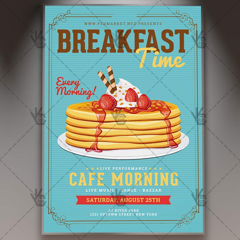 Breakfast Time is a simply modern flyer design by PSDmarket Team to be used with Photoshop CS3 and higher. Save your time and use it for business or for your clients! This can be use for Breakfast Menu, Happy Hour , Dinner Menu, Cafe Promotion, Restaurant Promotion and others.