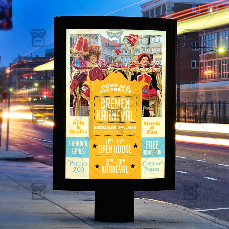 Bremen Karneval is an exclusive PSD flyer template for Adobe Photoshop designed by our best graphic designers to facilitate your task in promoting your business. With our readymade Community flyer in psd format you can invite you customers and guest to your event or to the best Bremen Carnival, Community Fair or Carnival Night in their lives.