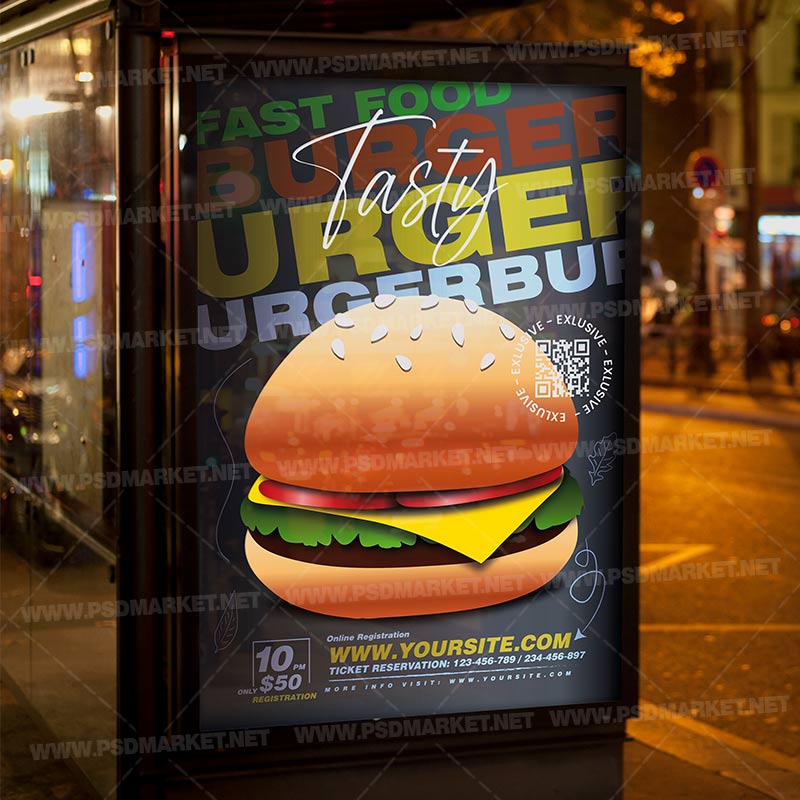 Burger Food Card Printable Template Flyer PSD is a simply modern flyer design by PSDmarket Team to be used with Photoshop CS3 and higher. Save your time and use it for business or for your clients! This can be use for Burger Food, Burger Party, Super Burger, Fast Food Show, Burger Party, Food Festival, Restaurant Menu, Food Night or Food Truck and others.