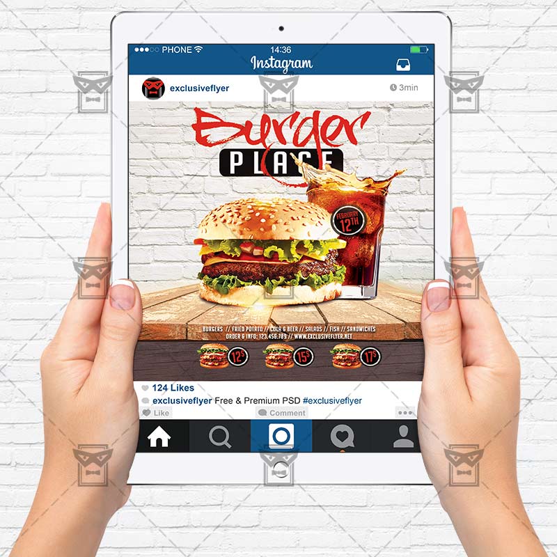 The Burger Place is the exclusive Photoshop PSD flyer template designed by ExclusiveFlyer to promote your Burger Place. This is a modern, stylish flyer and just be used for a Fast Food Place, Hamburgers Day, Food Festival, Burger Cafe etc. Dear customers! – you can also: Customize any flyers or Hire Us to create any unique product. Also, you can get unlimited access to all our templates. You can buy 1 month membership, 3 or 6 months membership or even 1 year membership plan and login on site, choose a design, click the button DOWNLOAD TEMPLATE and it’s yours. No hassle, no checkout! When you paid the template, you can find it in your personal account and of course you’ve got a message to your e-mail (maybe in spam) with link to download. Also, you can find all templates, which you buy, in your personal account! All of our flyers have a very good quality (300DPI). And it means that you just need to download one of them and make the necessary modifications such as replace the elements or choose the colors and start to invite your guests! You can order from us design of Banner Ad, Bi-Fold Brochure, Tri-Fold Brochure, Business Card, Logo, One-Sided Flyer, Two-sided Flyer or Postcard. All you need is to checkout and write us all information on our e-mail or skype. (order now). There are a lot of free flyer templates, free business card templates on our site! Also there are a lot of categories of flyers such as club flyers, seasonal flyers, sport flyers and also business flyers. You have a great choise on our site, so good luck! Don’t forget to follow our Facebook community, our page on Twitter, on Pinterest and on Tumblr and leave comments, cause we work for you! PSD is set up in 1275×1875 dimension (4” x 6” with 0,25” bleed). The PSD file is very well organised, with color coded groups and layers named appropriately. Remember, all stock images of models and other people used only for demonstration all charms of the flyer and don’t included in the download!