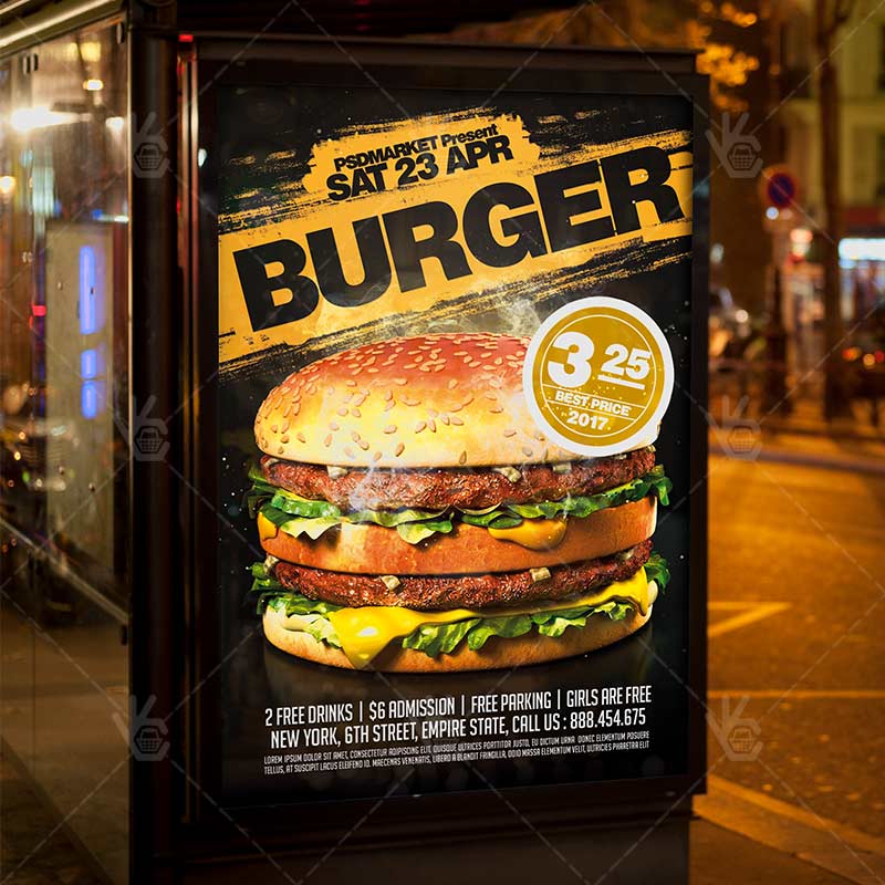 Burger is a simply modern flyer design by PSDmarket Team to be used with Photoshop CS3 and higher. Save your time and use it for business or for your clients! This can be use for Fast Food Show, Burger Party , Food Festival, Restaurant Menu, Food Night or Food Truck and others.