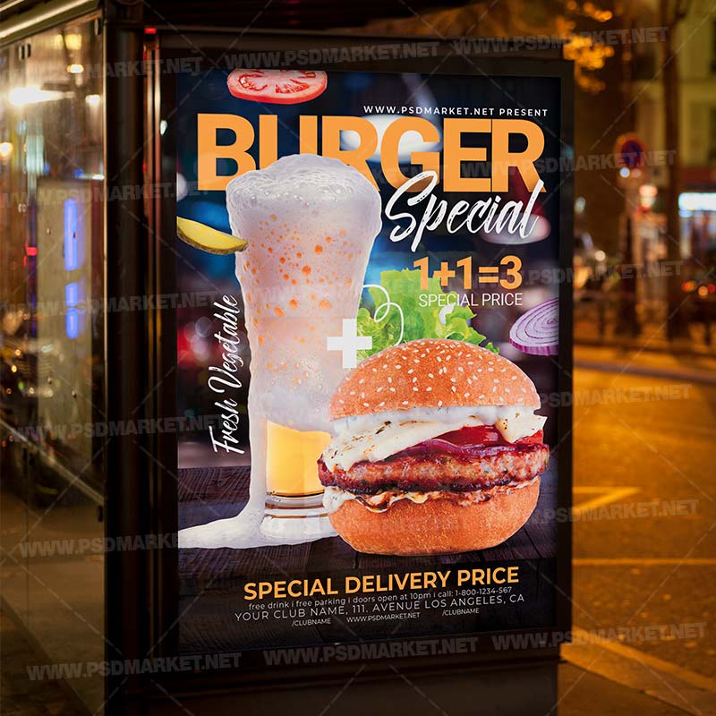 Burger Pub PSD Template Flyer is a simply modern flyer design by PSDmarket Team to be used with Photoshop CS3 and higher. Save your time and use it for business or for your clients! This can be use for Burger Menu, Burger Party, Super Burger, Fast Food Show, Burger Party, Food Festival, Restaurant Menu, Food Night or Food Truck and others.