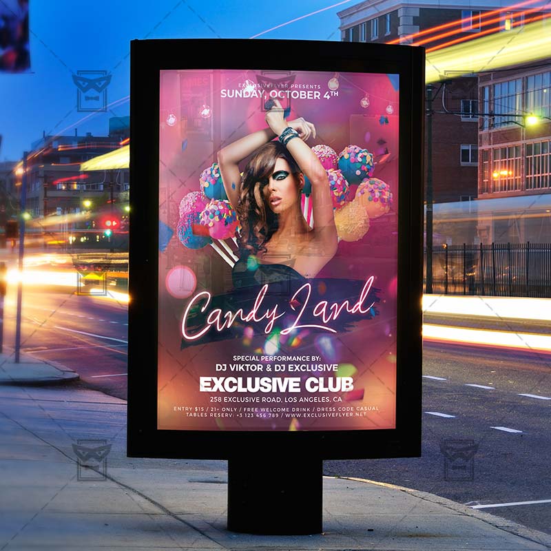 CandyLand Night A5 Flyer Template for Adobe Photoshop