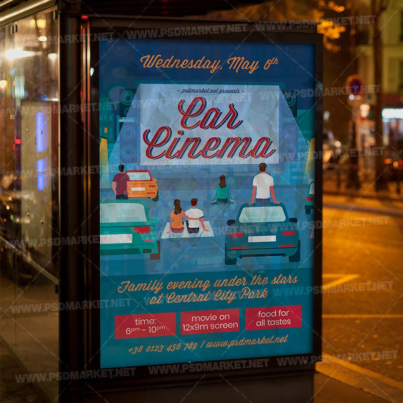 Car Cinema Template Flyer PSD is a simply modern flyer design by PSDmarket Team to be used with Photoshop CS3 and higher. Save your time and use it for business or for your clients! This can be use for Car Cinema, Drive-In Movie Night, Drive-In Cinema, Open Air Cinema, Open Air Movie Night and others.