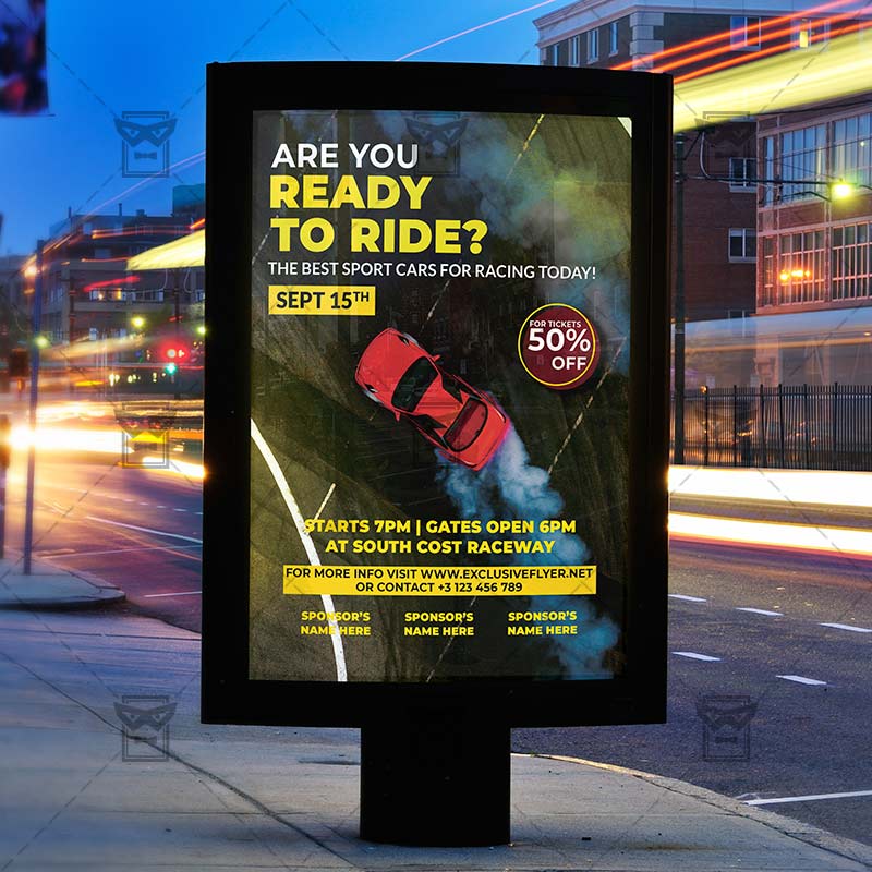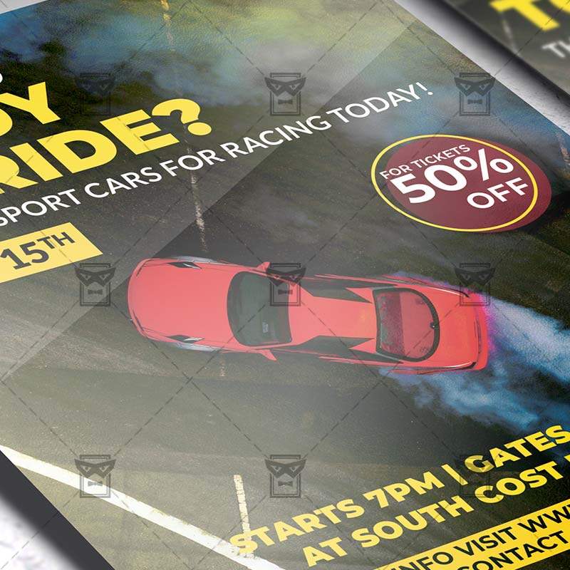 Car Racing Template an exclusive PSD flyer template for Adobe Photoshop designed by our best graphic designers to facilitate your task in promoting your business. With our readymade Club flyer in psd format you can invite you customers and guest to your event or to the best Drag Race, Car Show, Retro Car Show, Car Racing Show in their lives.