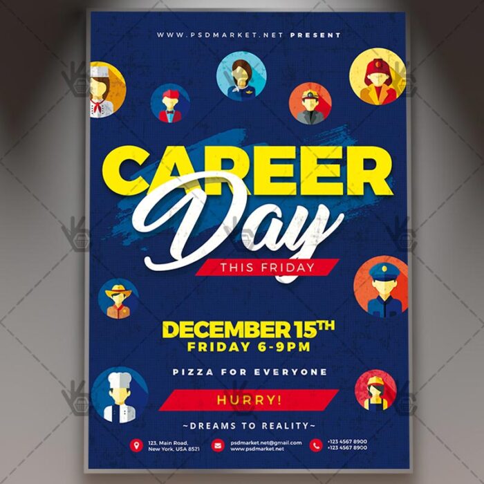 Career Flyer is a simply modern flyer design by PSDmarket Team to be used with Photoshop CS3 and higher. Save your time and use it for business or for your clients! This can be use for Career, Career Day, Career Day Party, Career Party, Career Night, Career Day Night, Job, Career Day Event and others.