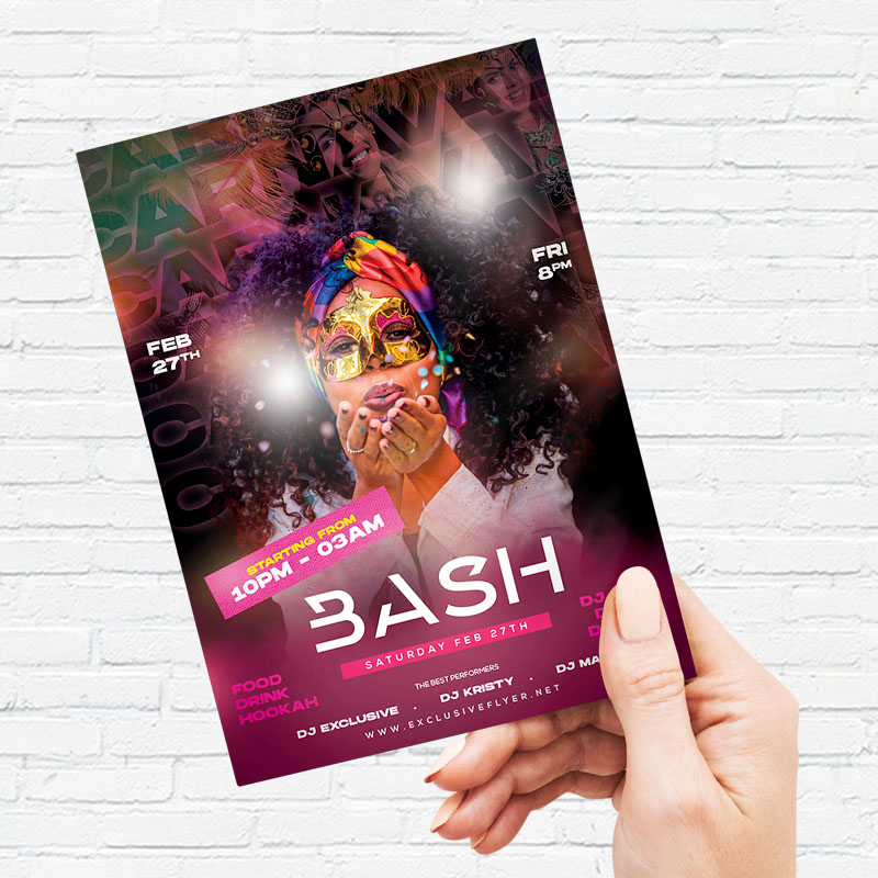 Carnaval Bash is an exclusive PSD flyer template for Adobe Photoshop designed by our best graphic designers to facilitate your task in promoting your business. This psd poster/flyer is the best choice for Mardi Gras Celebration, Carnival Festival, Carnaval Bash, Carnaval Night, or Carnival Party. With our readymade Carnaval Bash PSD Template flyer in psd format, you can invite your customers and guests to your event with a minimum of effort and time.