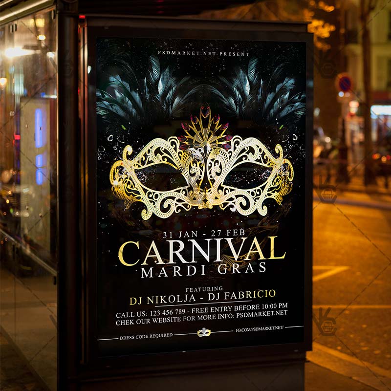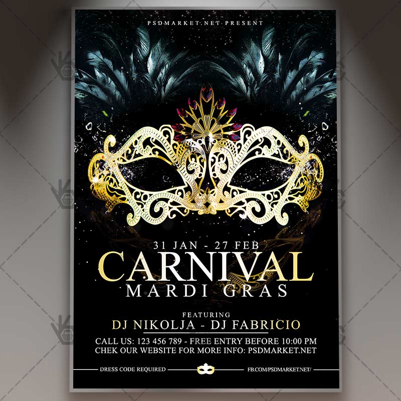 Carnival Party is a simply modern flyer design by PSDmarket Team to be used with Photoshop CS3 and higher. Save your time and use it for business or for your clients! This can be use for Mardi Gras Night, Carnival Party, Venetian Carnival Celebration and others.