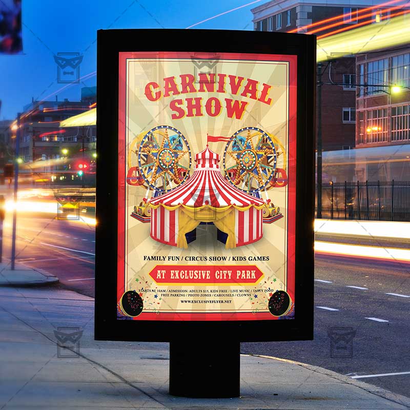 The Carnival Show is the exclusive Photoshop PSD flyer template designed by ExclusiveFlyer to promote your Carnival Show . This is a modern, stylish flyer and just be used for Carnival Night, Kids Festival, Circus Show etc.