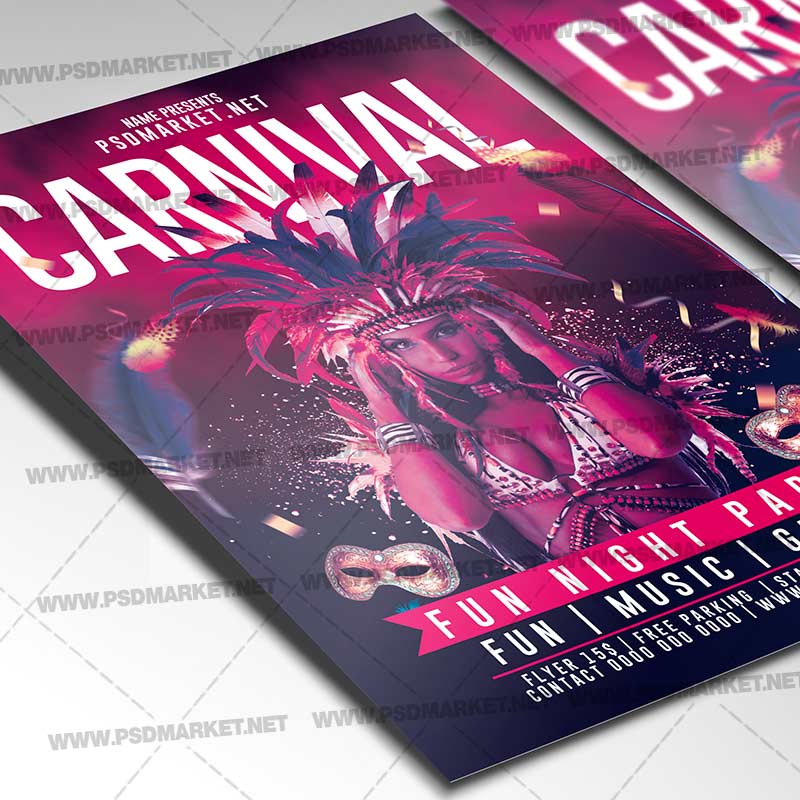 Carnival Flyer PSD Template is a simply modern flyer design by PSDmarket Team to be used with Photoshop CS3 and higher. Save your time and use it for business or for your clients! This can be use for Carnival, Mardi Gras Carnival, Mardi Gras, Mardi Gras Party, Mardi Gras Night, Carnival Party, Venetian Carnival Celebration, Mardi Gras Party Night, Mask Party and others.