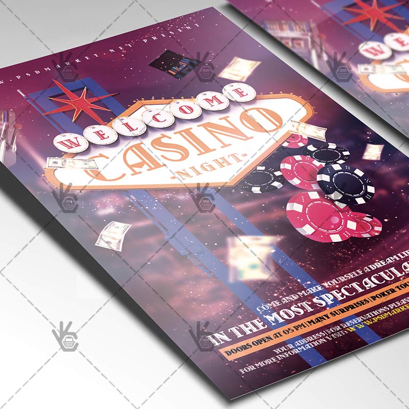 Casino Night is a simply modern flyer design by PSDmarket Team to be used with Photoshop CS3 and higher. Save your time and use it for business or for your clients! This can be use for Casino Party, Poker Night, Roulette Night, Poker Tournament, Casino Royal, Las Vegas Poker Night and others.
