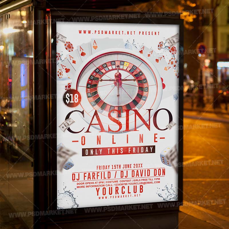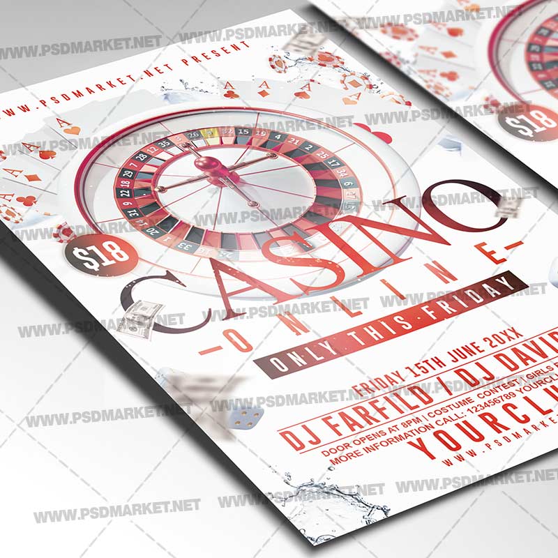 Casino Online Template Flyer PSD is a simply modern flyer design by PSDmarket Team to be used with Photoshop CS3 and higher. Save your time and use it for business or for your clients! This can be use for Casino, Casino Night, Poker Night, Roulette Night, Poker Tournament, Casino Royal, Las Vegas Poker Night and others.