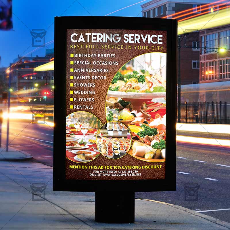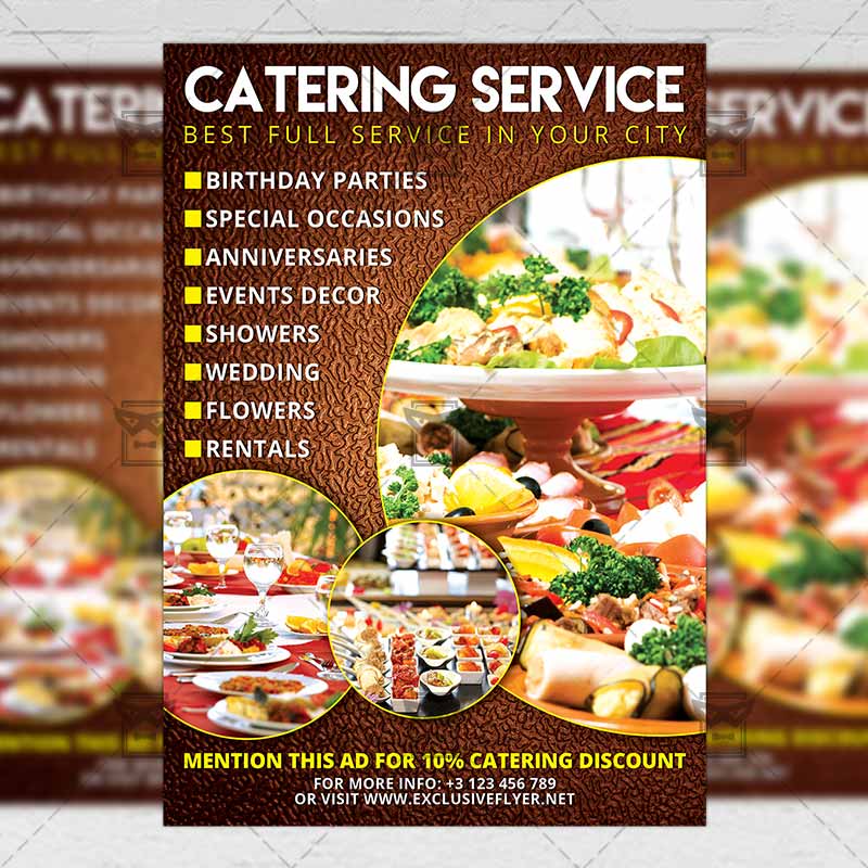 Catering is an exclusive PSD flyer template for Adobe Photoshop designed by our best graphic designers to facilitate your task in promoting your business. With our readymade Catering Service flyer in psd format you can invite you customers and guest to your event or to the best Food Service, Event Agency, Banquet Service or Decoration Service in their lives.