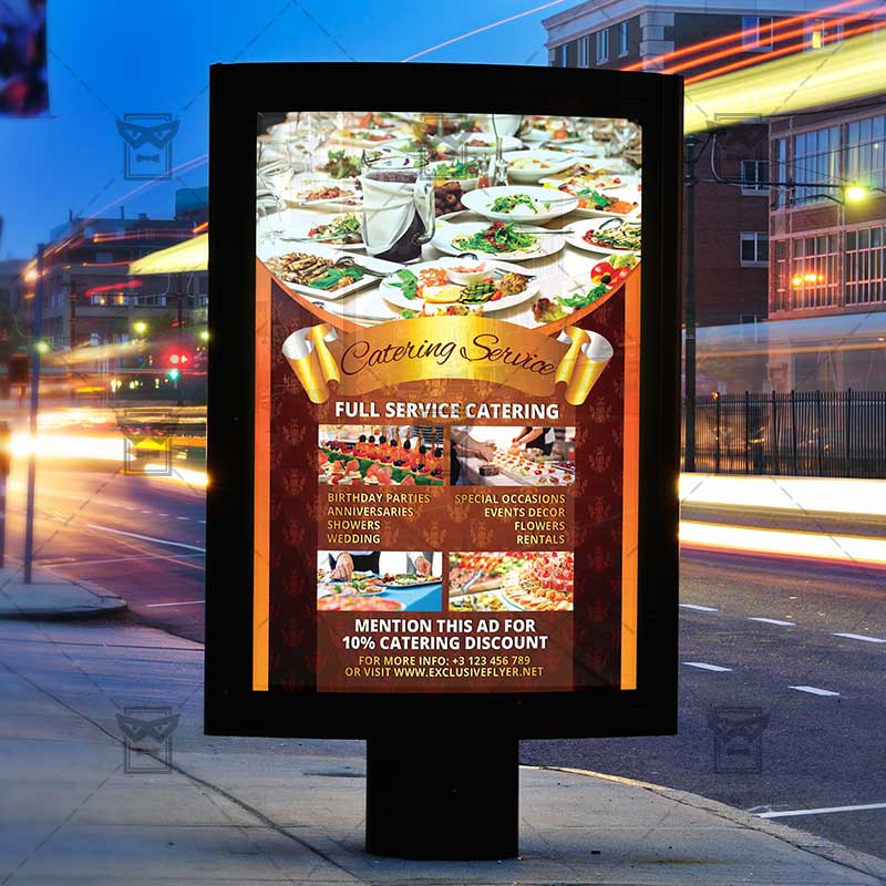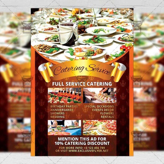 Catering Service is an exclusive PSD flyer template for Adobe Photoshop designed by our best graphic designers to facilitate your task in promoting your business. With our readymade Catering Service flyer in psd format you can invite you customers and guest to your event or to the best Food Service, Event Agency, Banquet Service or Decoration Service in their lives.