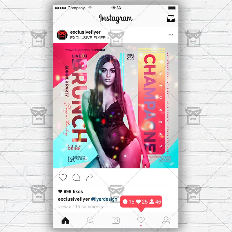 Champagne Brunch Template an exclusive PSD flyer template for Adobe Photoshop designed by our best graphic designers to facilitate your task in promoting your business. With our readymade Club flyer in psd format you can invite you customers and guest to your event or to the best Party Club, Girls Night, Party Online, Girls Night Out Party, Live Show Night, Online Show. Online Dj Battle, Online Party On in their lives.