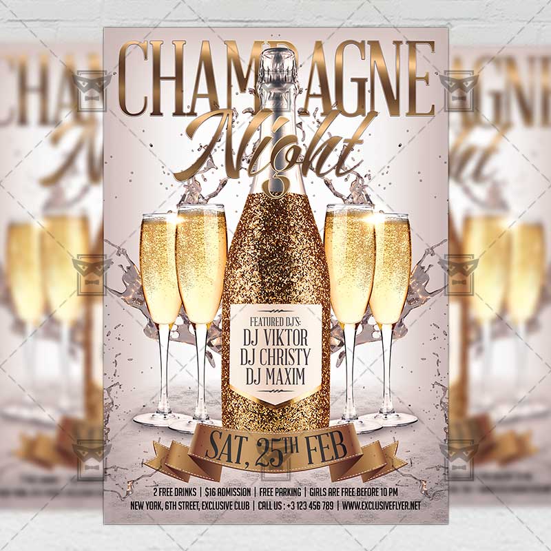 Champagne Night A5 Flyer Template for Adobe Photoshop