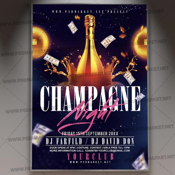 Champagne Night Flyer is a simply modern flyer design by PSDmarket Team to be used with Photoshop CS3 and higher. Save your time and use it for business or for your clients! This can be use for Champagne Night, Champagne Brunch, Champagne Night Event, Champagne Party, Boom Ladies Night, Ladies Night Out Party, Ladies Night Out, Girls Night Out, Girls Night, Ladies Night, Girls Party, Ladies Party, Sexy Night, Girls Night Out Party , Birthday Celebration or Luxury Night and others.