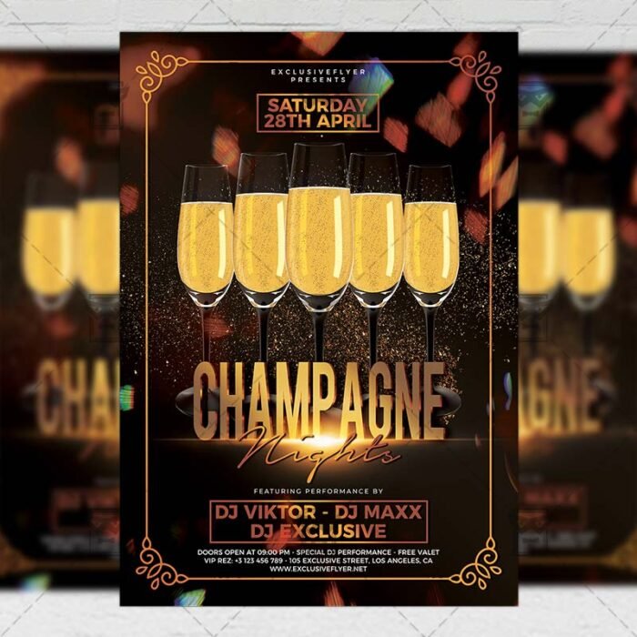 Champagne Nights A5 Flyer Template for Adobe Photoshop