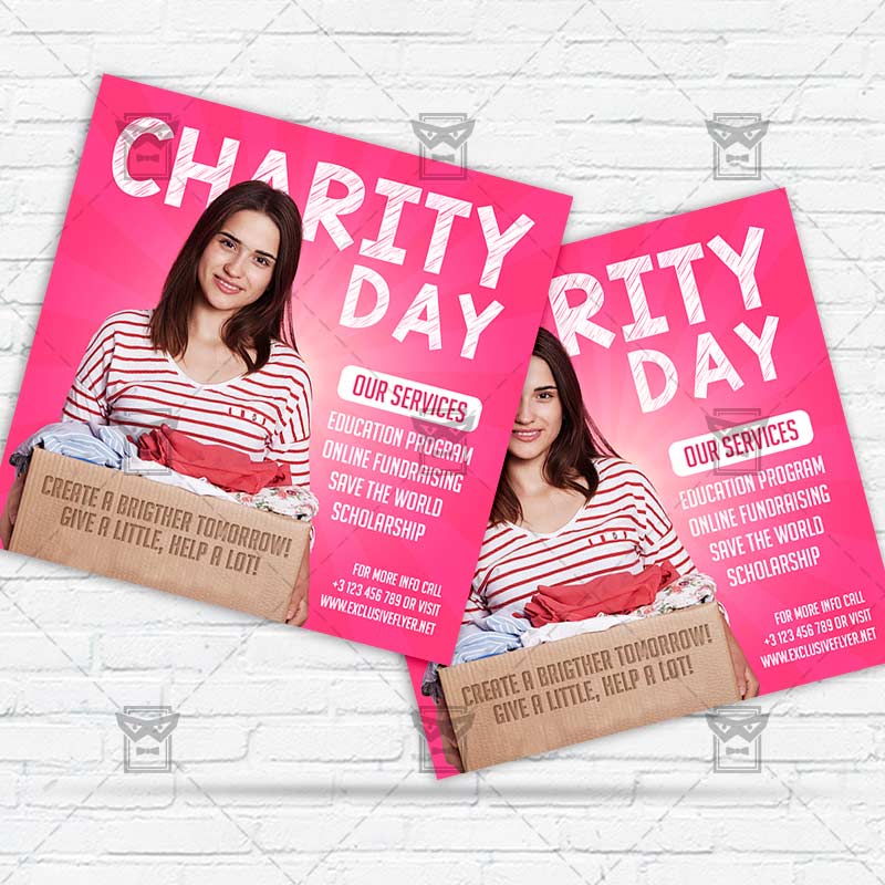 Charity Day Template an exclusive PSD flyer template for Adobe Photoshop designed by our best graphic designers to facilitate your task in promoting your business. With our readymade Club flyer in psd format you can invite you customers and guest to your event or to the best Charity Event, Charity Weekend, Charity Night, Donation Event in their lives.