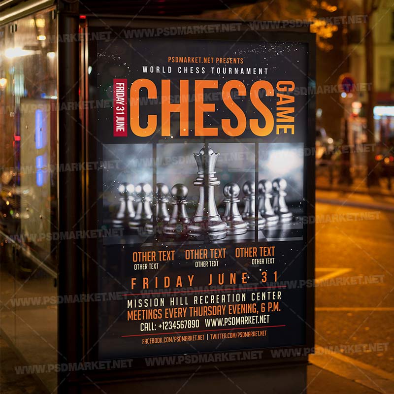 Chess Game Template Flyer PSD is a simply modern flyer design by PSDmarket Team to be used with Photoshop CS3 and higher. Save your time and use it for business or for your clients! This can be use for Chess Game, Chess Event, Chess Tournament, Chess Club, Chess Tournament, Chess Game, Chess Club, Chess Match, Chess Challenge, Chess Camp or Chess Event and others.