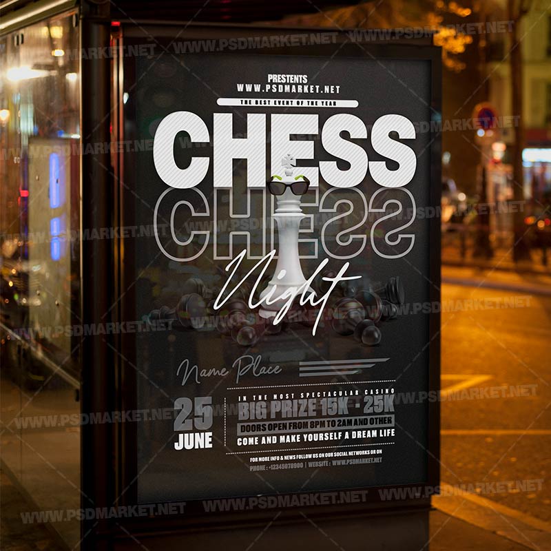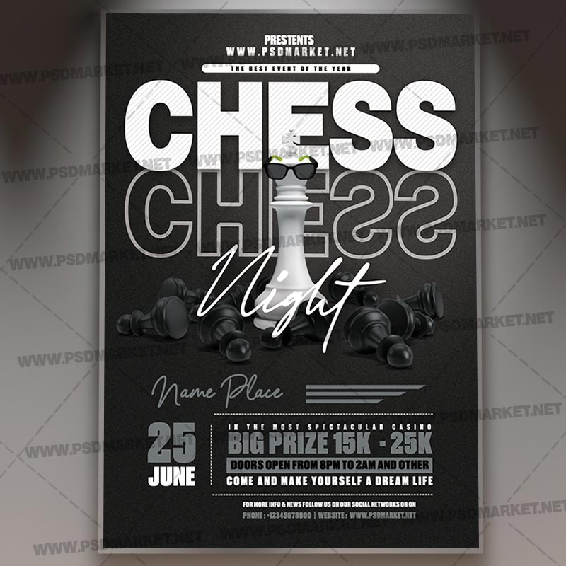 Chess Template Flyer PSD is a simply modern flyer design by PSDmarket Team to be used with Photoshop CS3 and higher. Save your time and use it for business or for your clients! This can be use for Chess Club, Chess Tournament, Chess Game, Chess Club, Chess Match, Chess Challenge, Chess Camp or Chess Event and others.