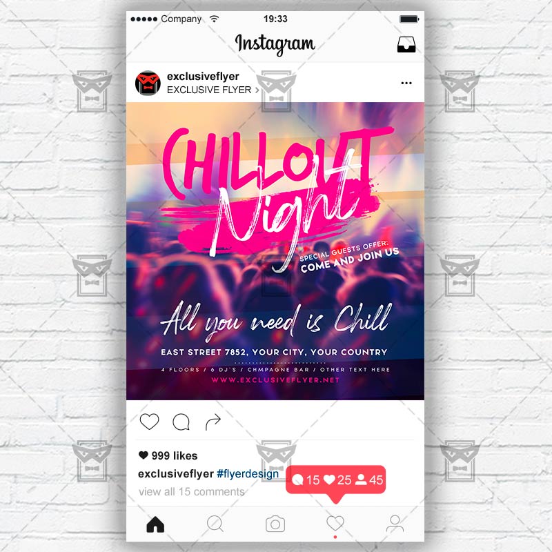 Chill Night Template an exclusive PSD flyer template for Adobe Photoshop designed by our best graphic designers to facilitate your task in promoting your business. With our readymade Club flyer in psd format you can invite you customers and guest to your event or to the best Party Club, Girls Night, Party Online, Girls Night Out Party, Live Show Night, Online Show. Online Dj Battle, Online Party On in their lives.