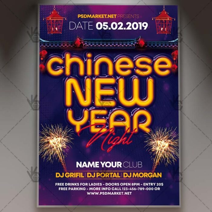 Chinese New Year Night Flyer is a simply modern flyer design by PSDmarket Team to be used with Photoshop CS3 and higher. Save your time and use it for business or for your clients! This can be use for Chinese New Year Night, Chinese New Year, Chinese New Year Celebration, Chinese New Year Day, Chinese New Year Festival or Chinese New Year Event and others.