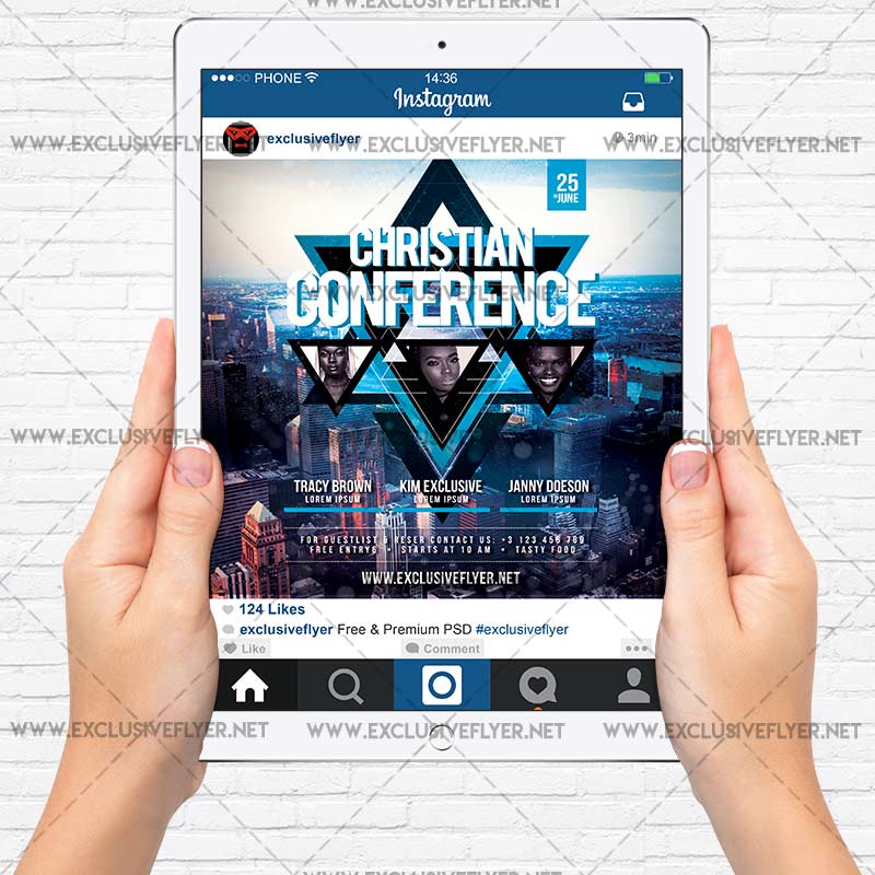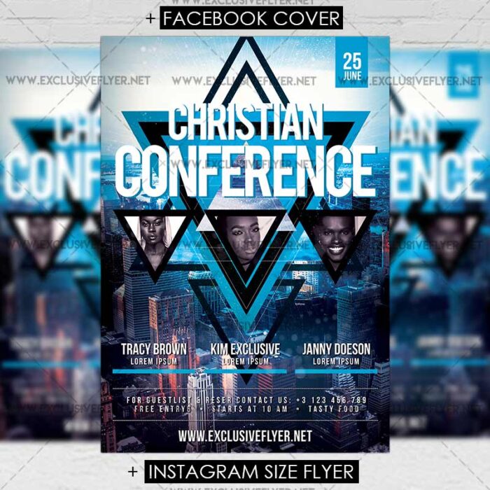 The Christian Conference is the exclusive Photoshop PSD flyer template designed by ExclusiveFlyer to promote your Christian Conference. This is a modern, stylish flyer and just be used for a Church Conference, Christian Conference, Gospel etc. Dear customers! – you can also: Customize any flyers or Hire Us to create any unique product. Also, you can get unlimited access to all our templates. You can buy 1 month membership, 3 or 6 months membership or even 1 year membership plan and login on site, choose a design, click the button DOWNLOAD TEMPLATE and it’s yours. No hassle, no checkout! When you paid the template, you can find it in your personal account and of course you’ve got a message to your e-mail (maybe in spam) with link to download. Also, you can find all templates, which you buy, in your personal account! All of our flyers have a very good quality (300DPI). And it means that you just need to download one of them and make the necessary modifications such as replace the elements or choose the colors and start to invite your guests! You can order from us design of Banner Ad, Bi-Fold Brochure, Tri-Fold Brochure, Business Card, Logo, One-Sided Flyer, Two-sided Flyer or Postcard. All you need is to checkout and write us all information on our e-mail or skype. (order now). There are a lot of free flyer templates, free business card templates on our site! Also there are a lot of categories of flyers such as club flyers, seasonal flyers, sport flyers and also business flyers. You have a great choise on our site, so good luck! Don’t forget to follow our Facebook community, our page on Twitter, on Pinterest and on Tumblr and leave comments, cause we work for you! PSD is set up in 1819×2551 dimension. The PSD file is very well organised, with color coded groups and layers named appropriately. Remember, all stock images of models and other people used only for demonstration all charms of the flyer and don’t included in the download!